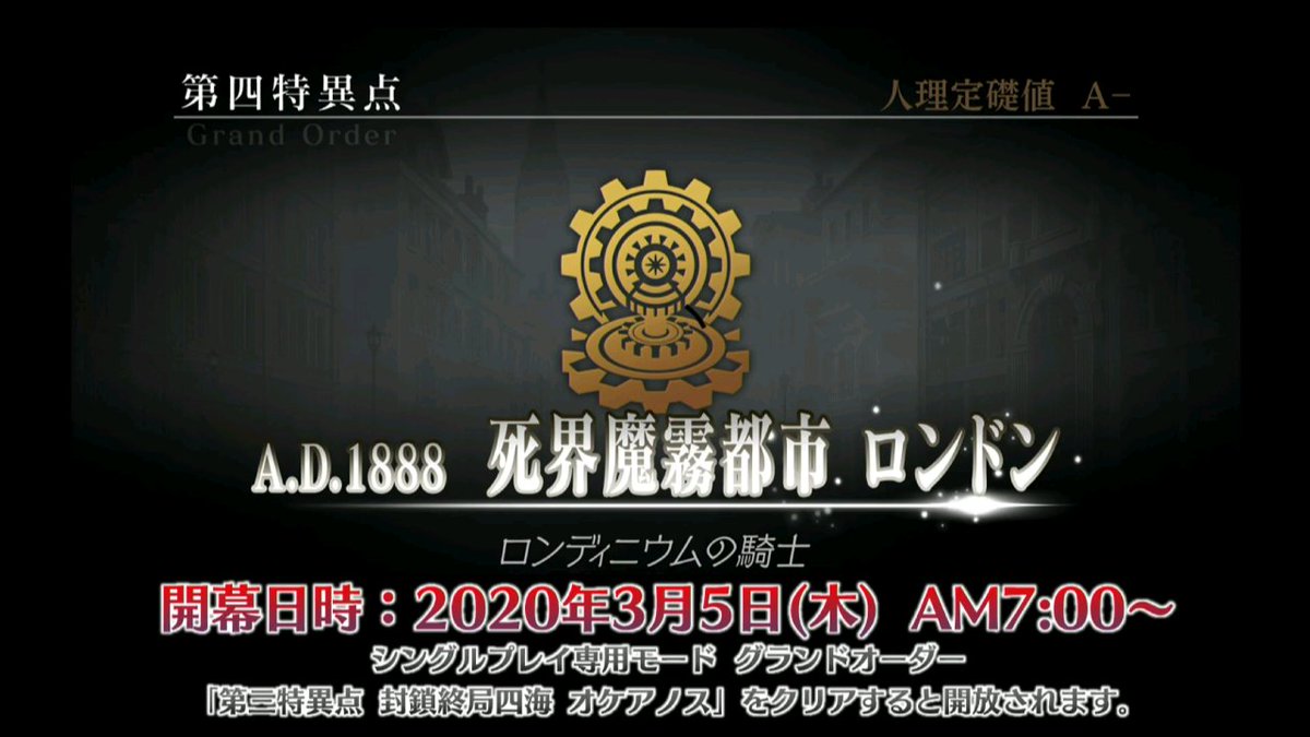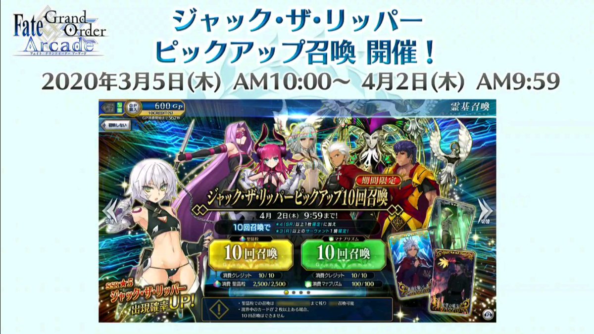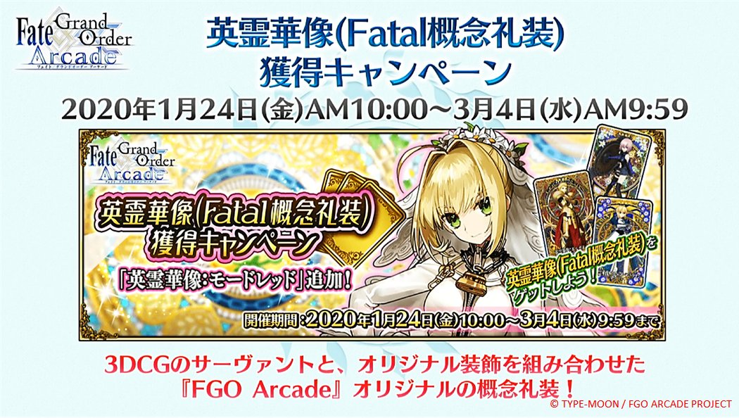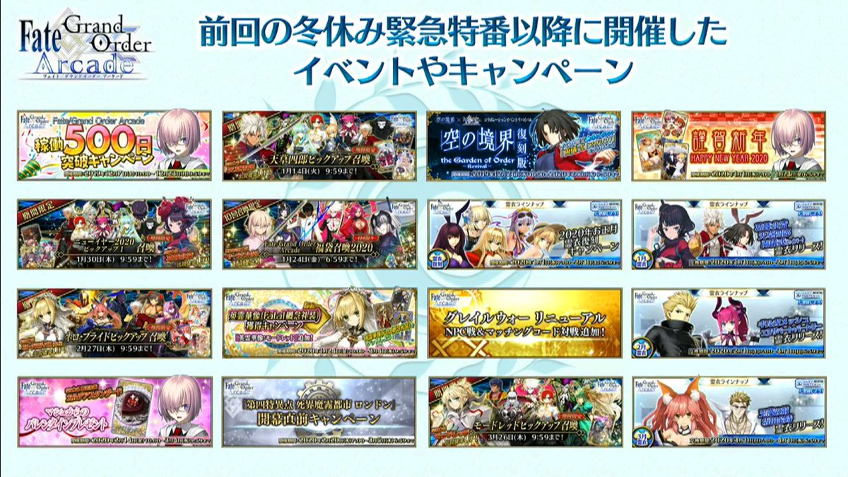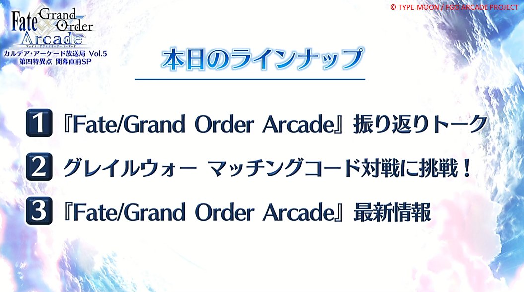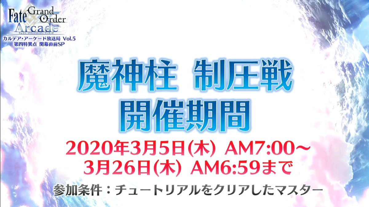 『Fate/Grand Order Arcade』の公式生放送番組「Fate/Grand Order Arcade カルデア・アーケード放送局 Vol.5 第四特異点 開幕直前SP」の配信は、このあと3月3日(火)20:30から!YouTube Liveでは、事前放送を配信中!詳しくは→https://t.co/bY1IIYSs1k #FGO #FGOAC pic.twitter.com/nOSHOuWndi— 【公式】Fate/Grand Order (@fgoproject) 2020年3月3日