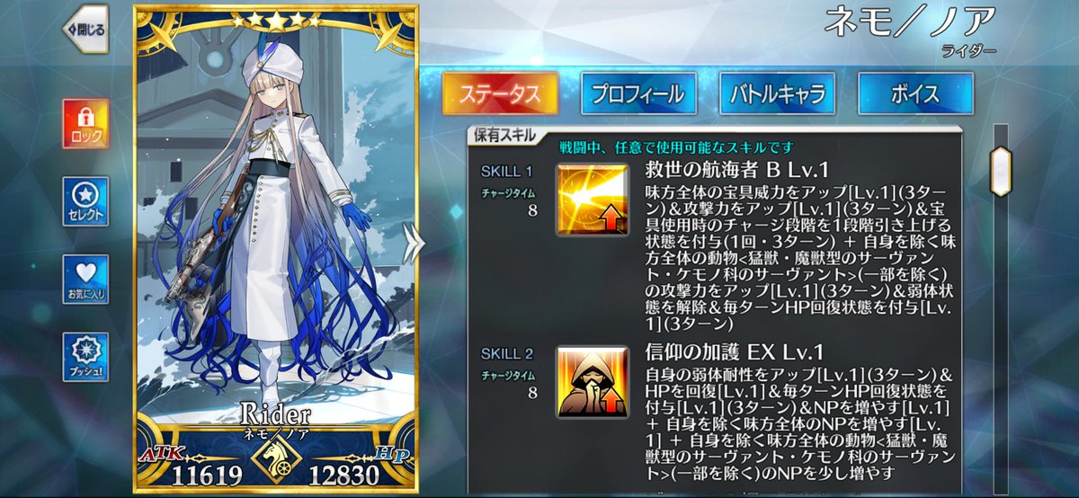 【FGO】ゾーハルの輝石。ネモ/ノアのスキル・宝具が判明