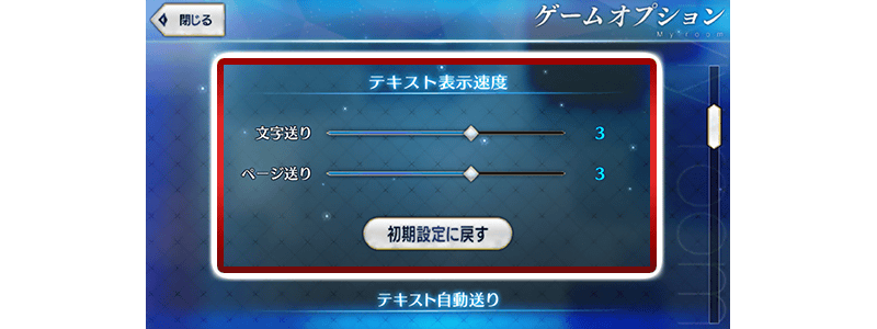 数値を大きくすることでテキスト表示速度が上昇します。