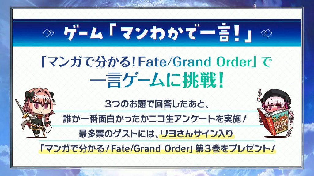 Fate/Grand Order カルデア放送局SP「マンガで分かる!Fate/Grand Order」コラボレーションイベント開幕記念放送