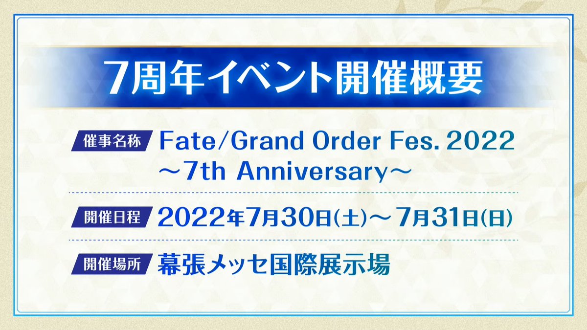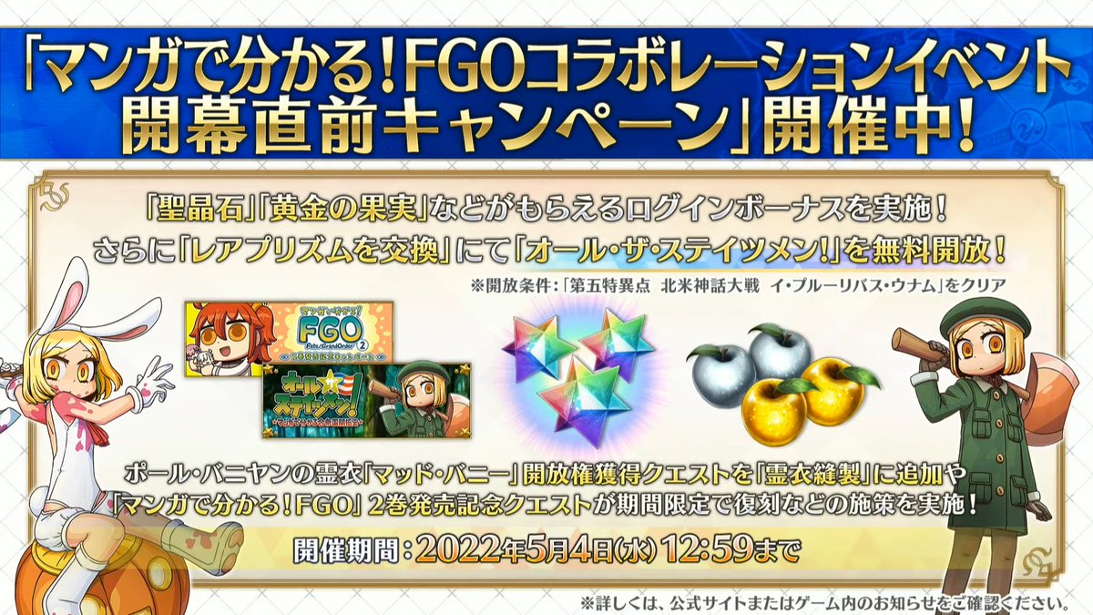ニコ生:https://t.co/7ZsEf40joR #FGOhttps://t.co/0kQd4YDFsn— 【公式】Fate/Grand Order (@fgoproject) April 27, 2022
