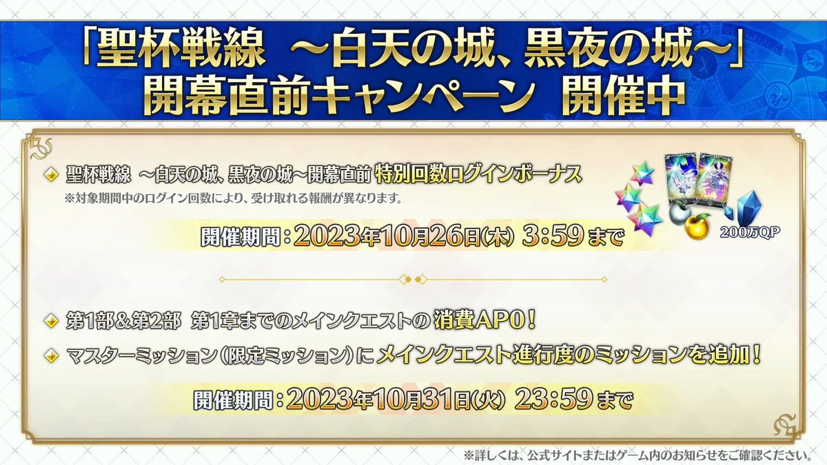 詳しくは→https://t.co/1dDzeyM0cS #FGO pic.twitter.com/0mwrYPp10p— 【公式】Fate/Grand Order (@fgoproject) October 25, 2023