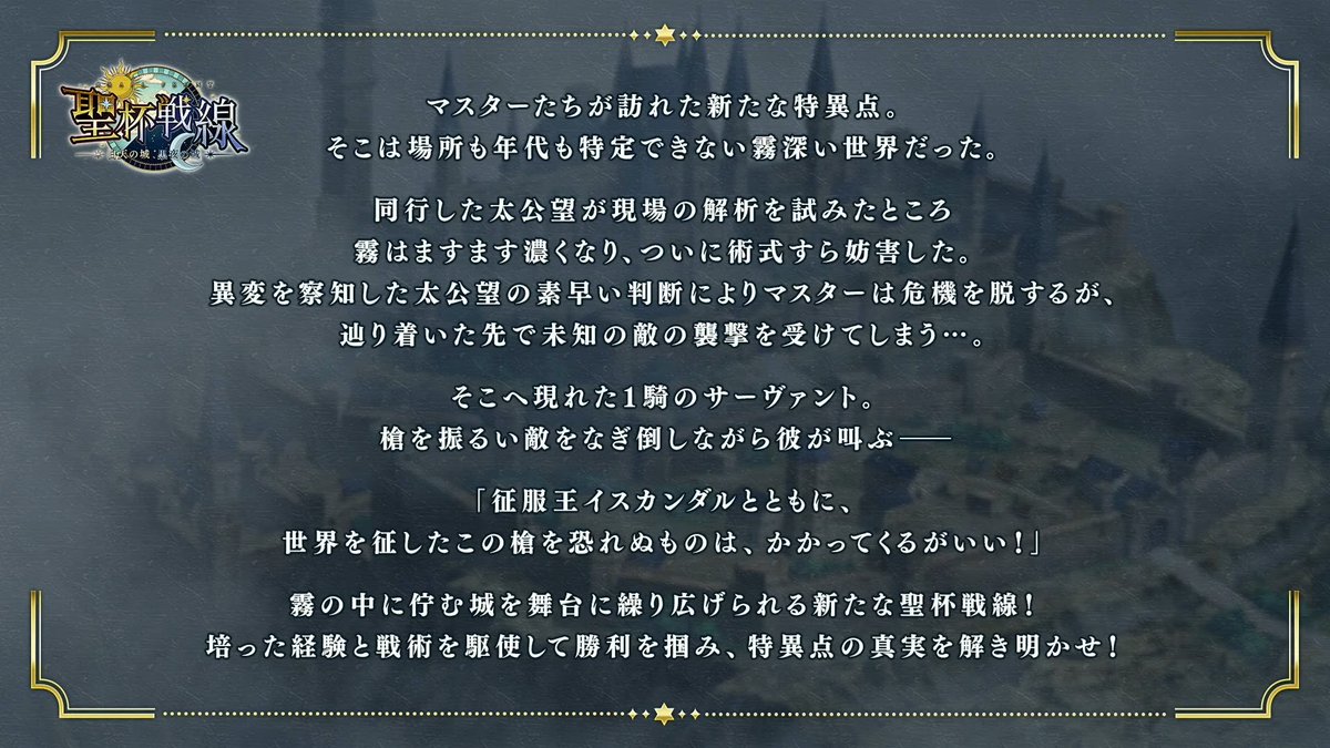 まもなく配信予定の期間限定イベント「聖杯戦線 ~白天の城、黒夜の城~」の情報を公開!