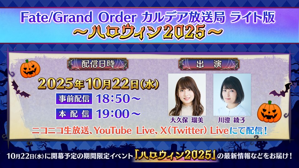 【ニュース】「Fate/Grand Order カルデア放送局 ライト版 ~ハロウィン2025~」が配信決定