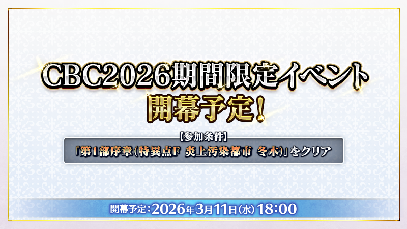 2026年3月11日(水)18:00より、「CBC2026」の開催と期間限定イベントの開幕を予定!