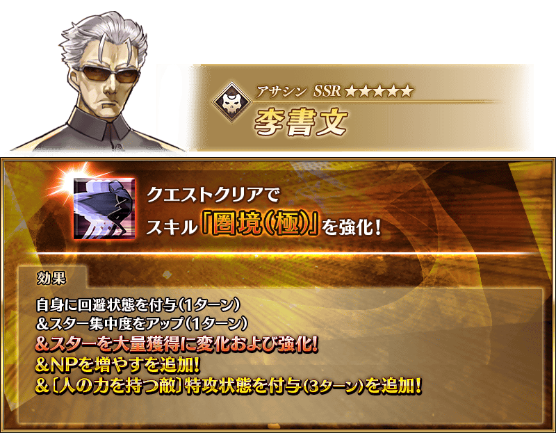 書文先生は、即死倍率が実質殺式と多くの場合同じだから、NP30貰えたのは良かったわ