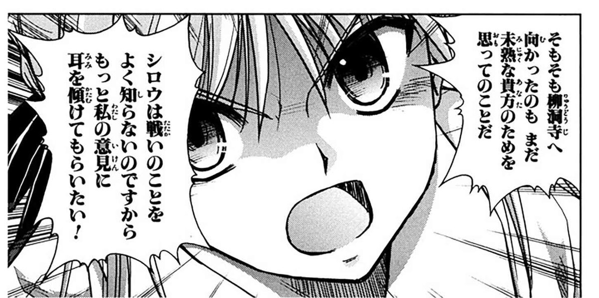 衛宮家に帰り、体を休めるセイバー。昨晩の行動で士郎と言い合いになってしまい…。